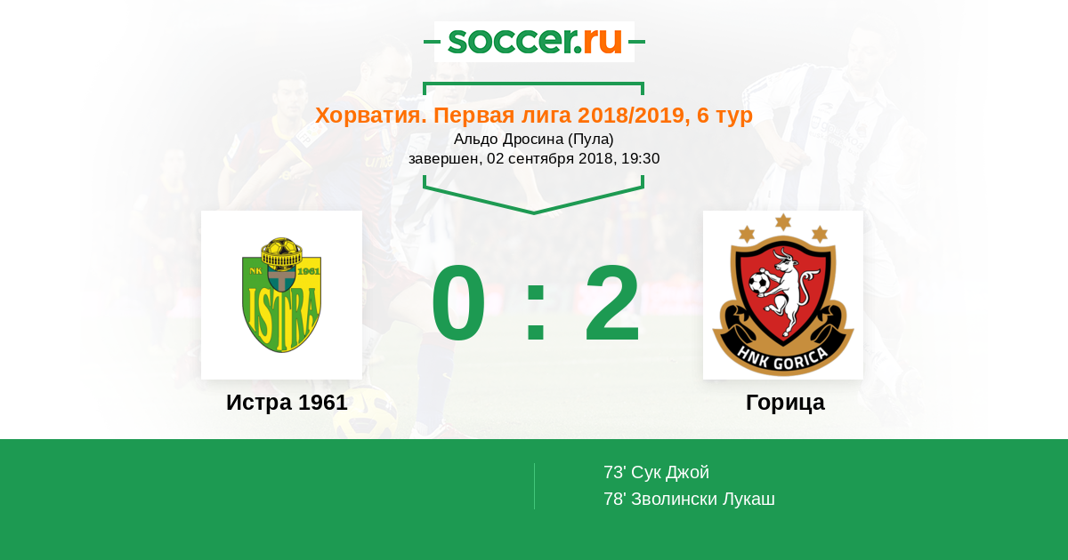 Истра 1961 - Горица: обзор матча 2 сентября 2018
