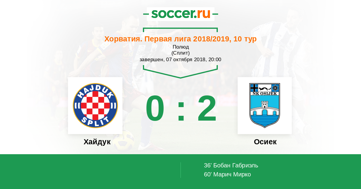 Хайдук - Осиек: обзор матча 7 октября 2018