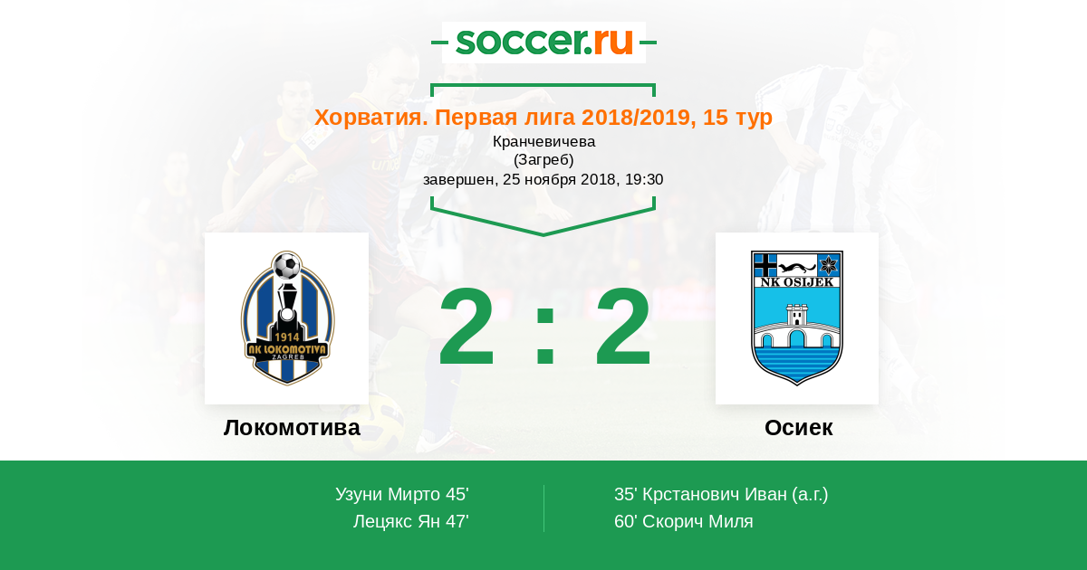 Локомотива - Осиек: обзор матча 25 ноября 2018