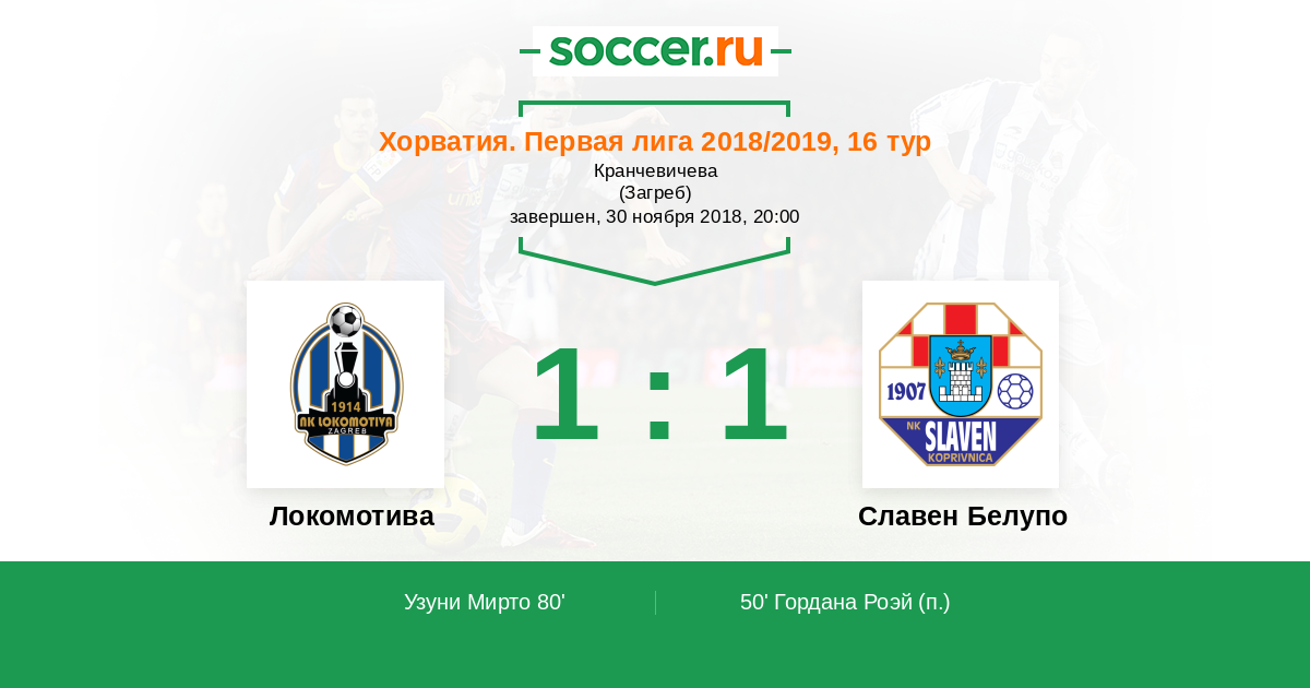 Локомотива - Славен Белупо: обзор матча 30 ноября 2018