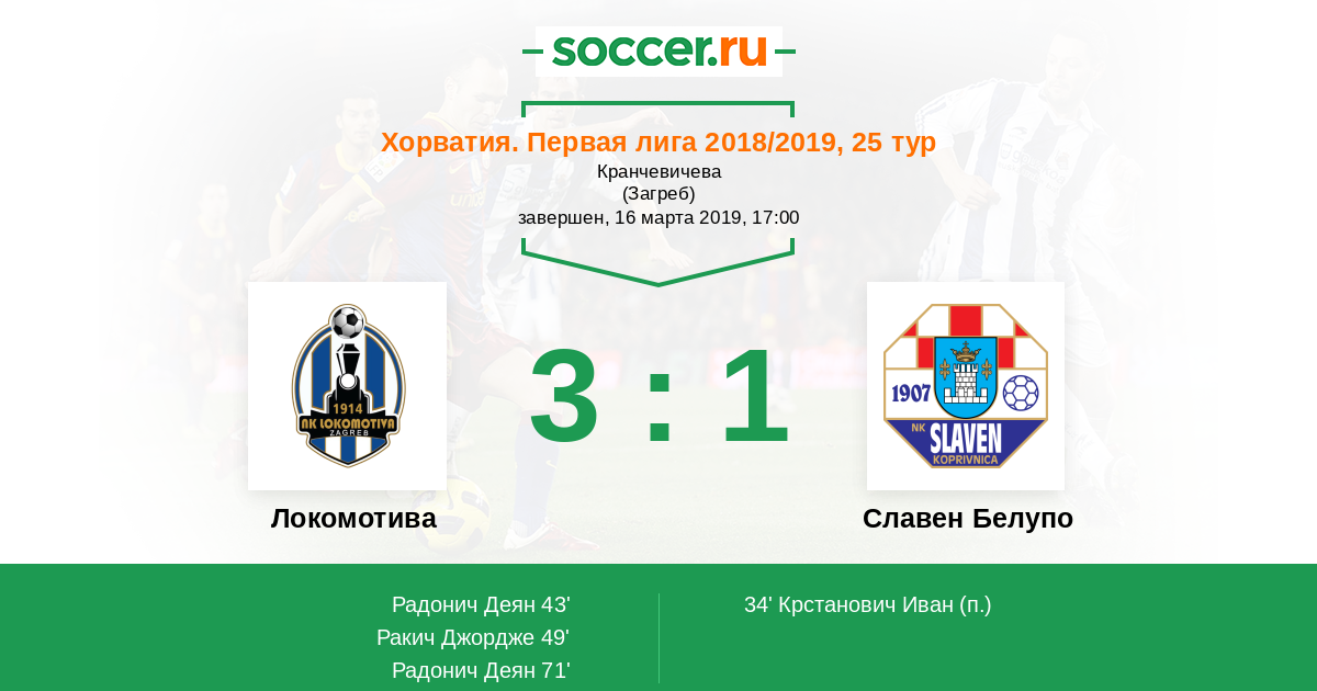 Локомотива - Славен Белупо: обзор матча 16 марта 2019