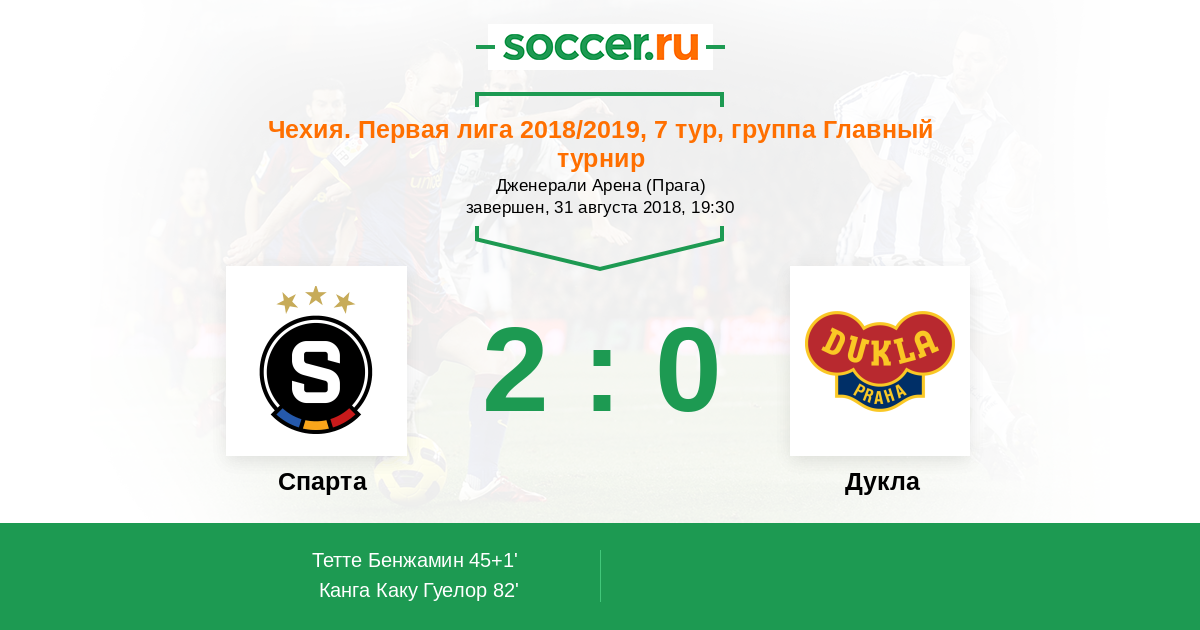 Спарта - Дукла: обзор матча 31 августа 2018