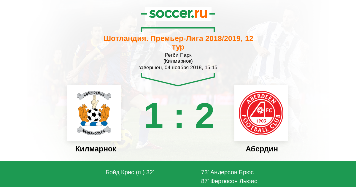 Килмарнок - Абердин: обзор матча 4 ноября 2018