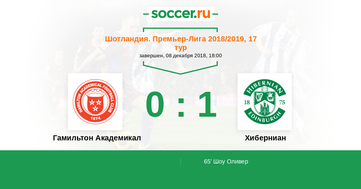 Гамильтон Академикал - Хиберниан: обзор матча 8 декабря 2018