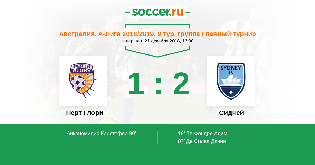 Перт Глори - Сидней: обзор матча 21 декабря 2018