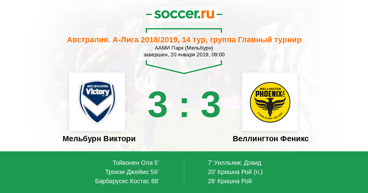 Мельбурн Виктори - Веллингтон Феникс: обзор матча 20 января 2019