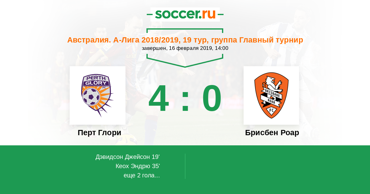 Перт Глори - Брисбен Роар: обзор матча 16 февраля 2019