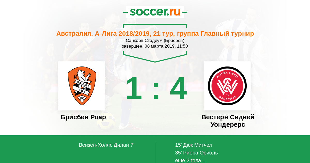 Брисбен Роар - Вестерн Сидней Уондерерс: обзор матча 8 марта 2019