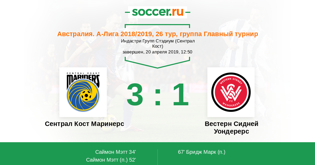 Сентрал Кост Маринерс - Вестерн Сидней Уондерерс: обзор матча 20 апреля 2019
