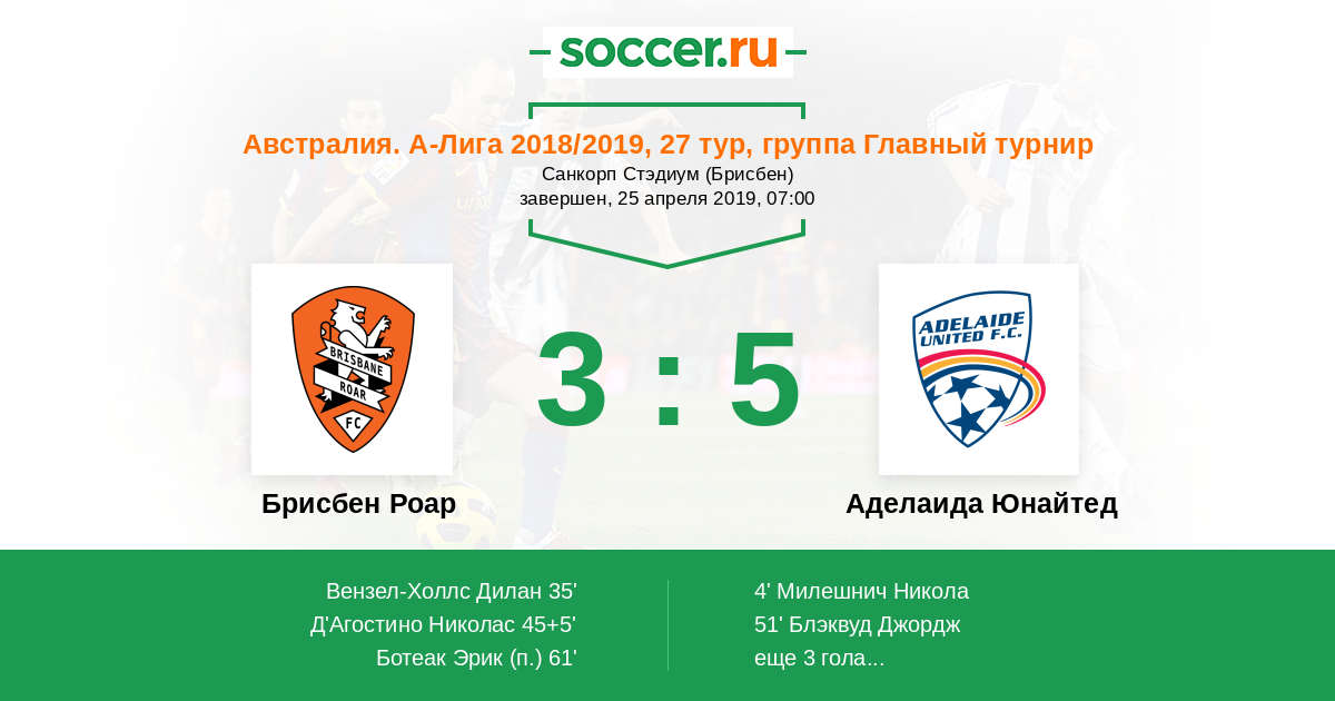 Брисбен Роар - Аделаида Юнайтед: обзор матча 25 апреля 2019