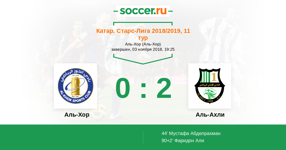 Аль-Хор - Аль-Ахли: обзор матча 3 ноября 2018
