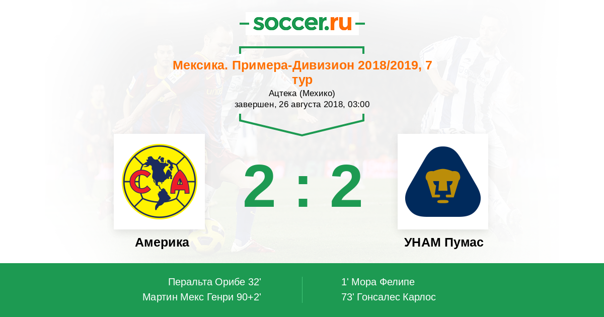 Америка - УНАМ Пумас: обзор матча 26 августа 2018