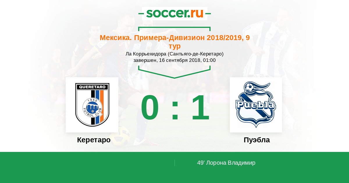 Керетаро - Пуэбла: обзор матча 16 сентября 2018