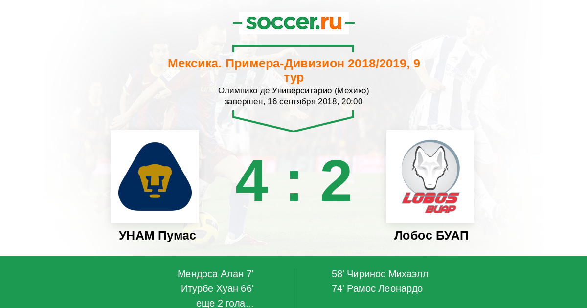 УНАМ Пумас - Лобос БУАП: обзор матча 16 сентября 2018