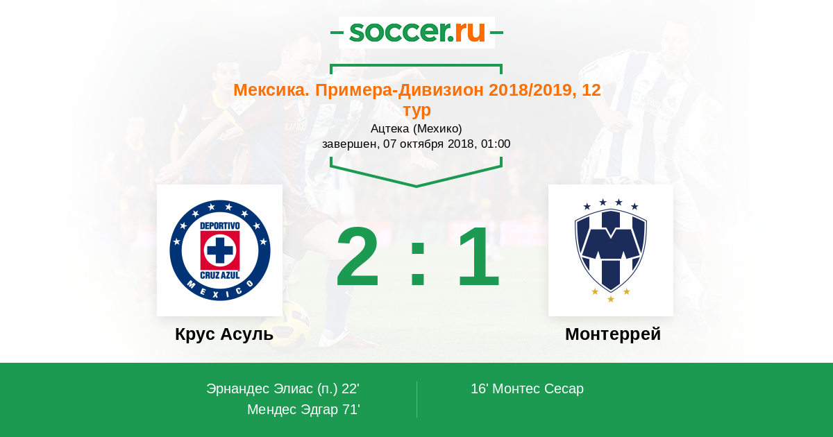 Крус Асуль - Монтеррей: обзор матча 7 октября 2018