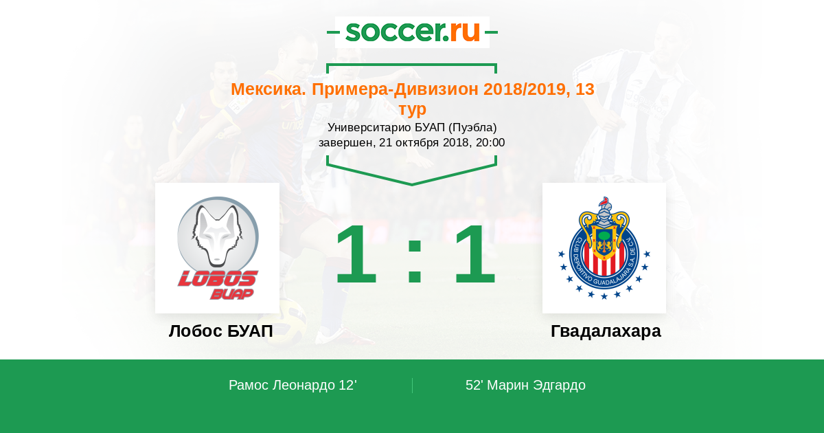 Лобос БУАП - Гвадалахара: обзор матча 21 октября 2018