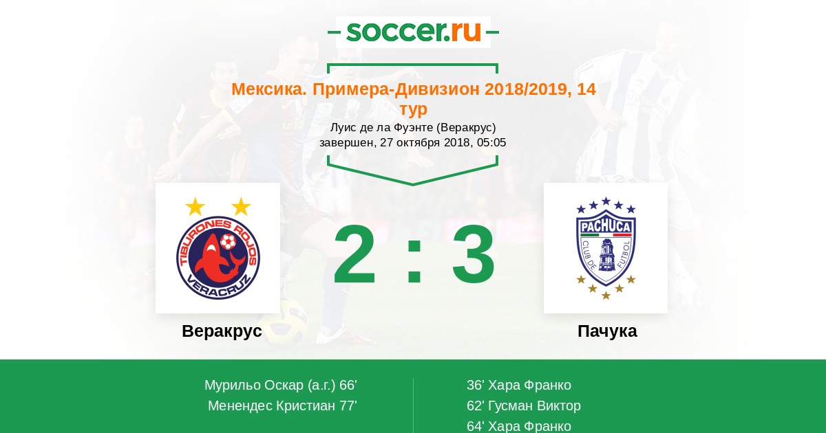 Веракрус - Пачука: обзор матча 27 октября 2018