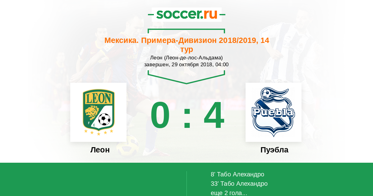 Леон - Пуэбла: обзор матча 29 октября 2018
