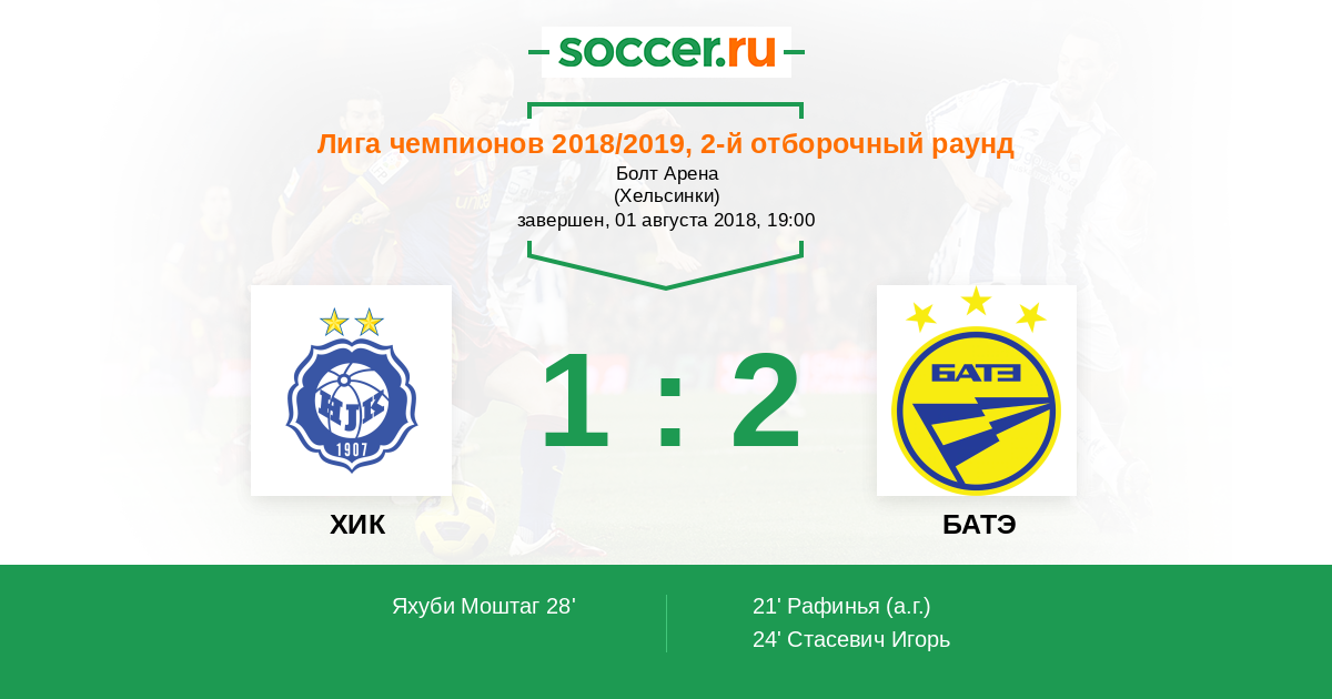 ХИК - БАТЭ: обзор матча 1 августа 2018