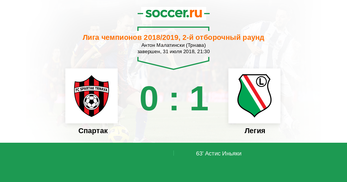Спартак - Легия: обзор матча 31 июля 2018