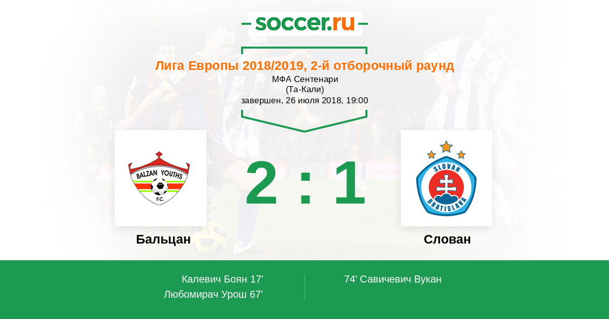 Бальцан - Слован: обзор матча 26 июля 2018