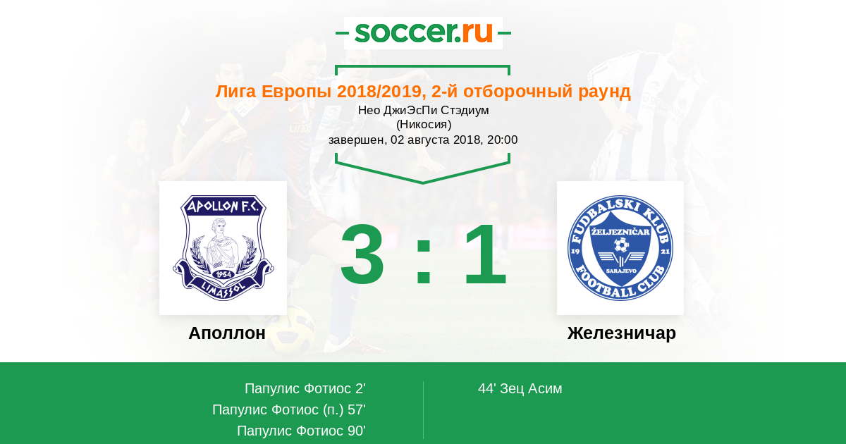 Аполлон - Железничар: обзор матча 2 августа 2018