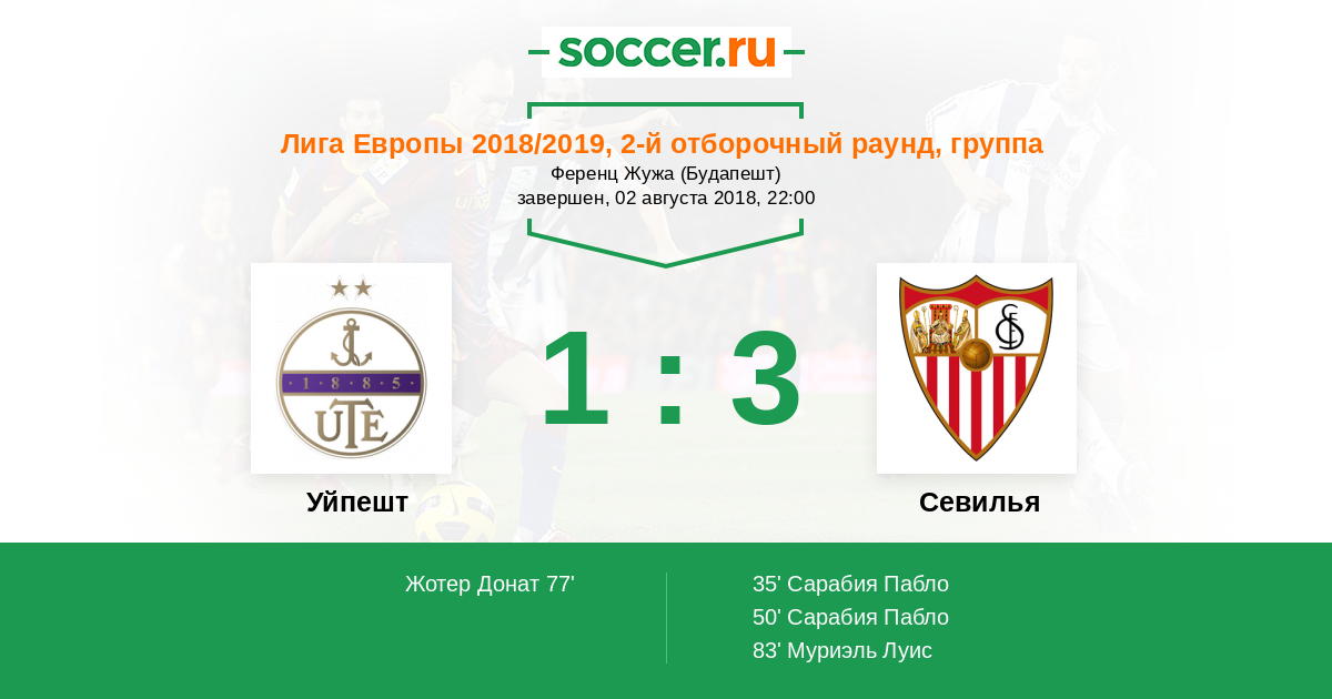 Уйпешт - Севилья: обзор матча 2 августа 2018