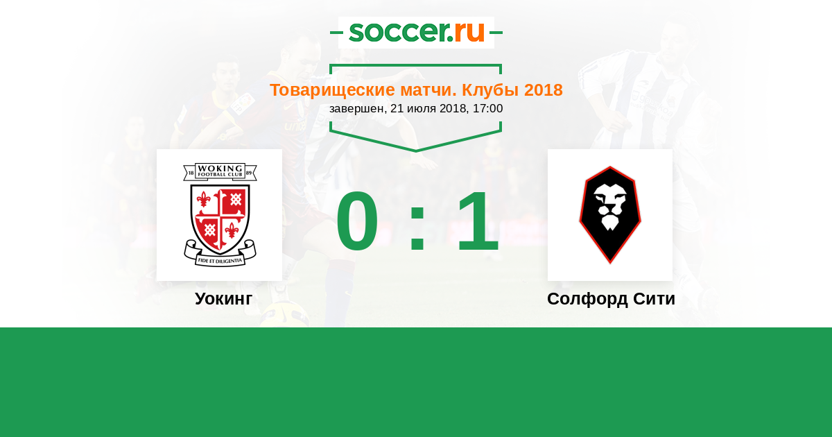 Уокинг - Солфорд Сити: обзор матча 21 июля 2018