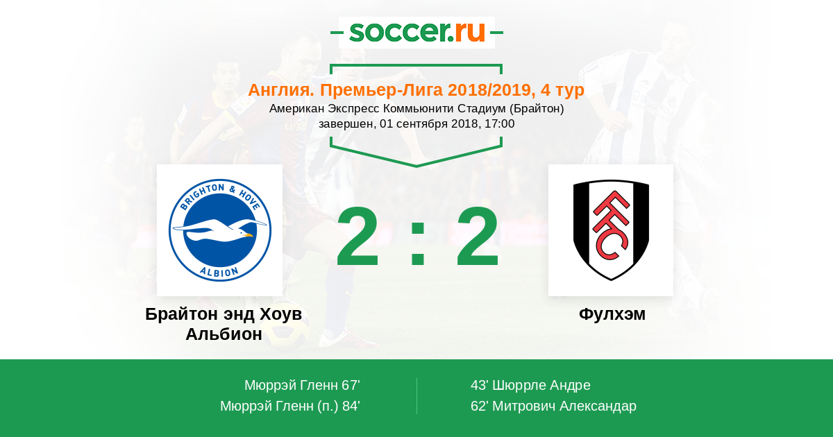 Брайтон энд Хоув Альбион - Фулхэм: обзор матча 1 сентября 2018