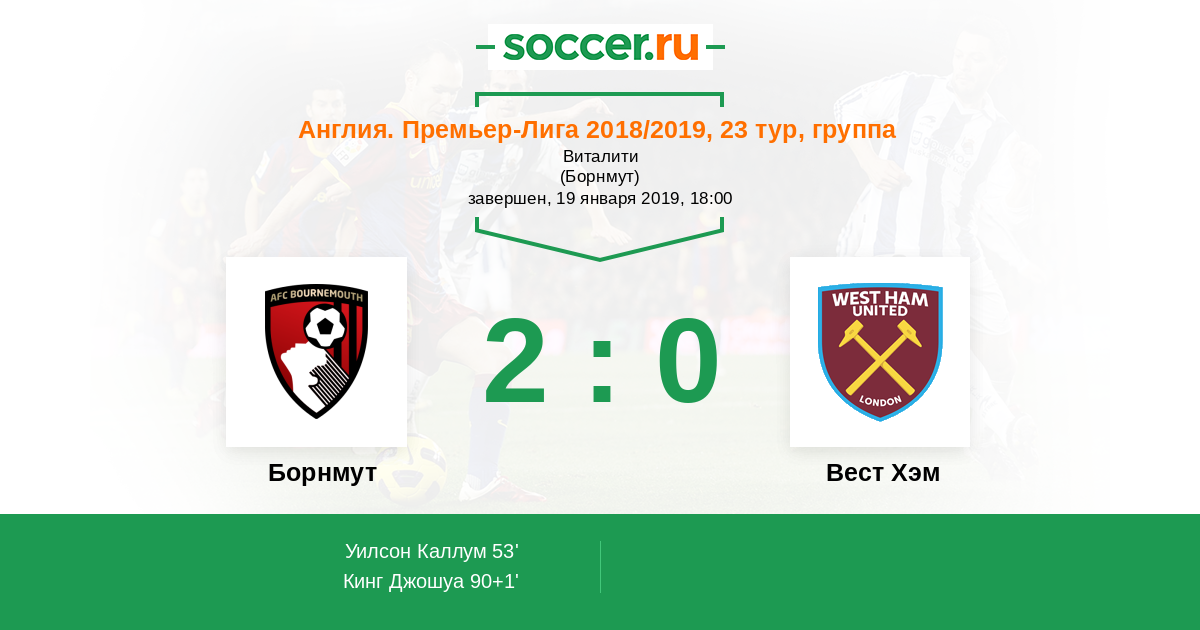 Борнмут - Вест Хэм: обзор матча 19 января 2019