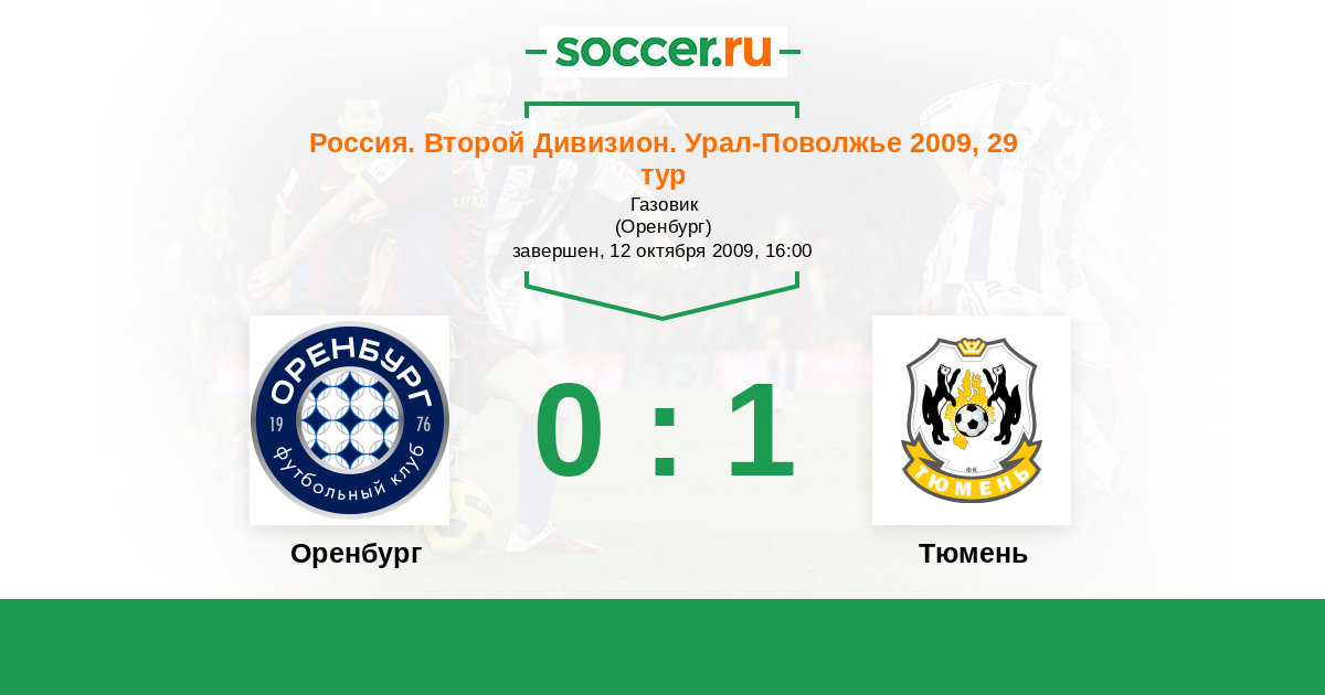 Газовик - Тюмень: обзор матча 12 октября 2009