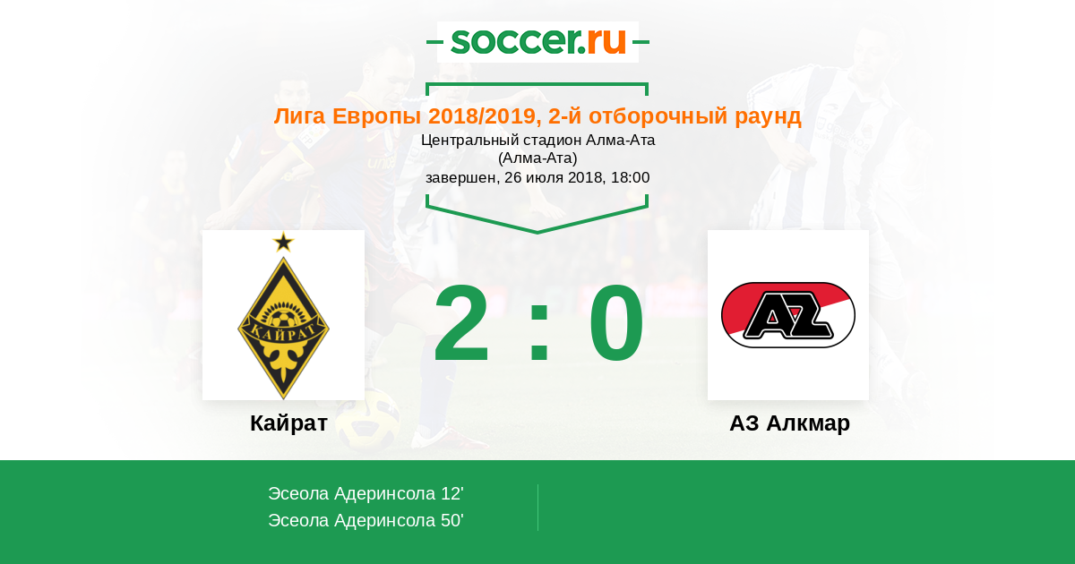 Кайрат - АЗ Алкмар: обзор матча 26 июля 2018