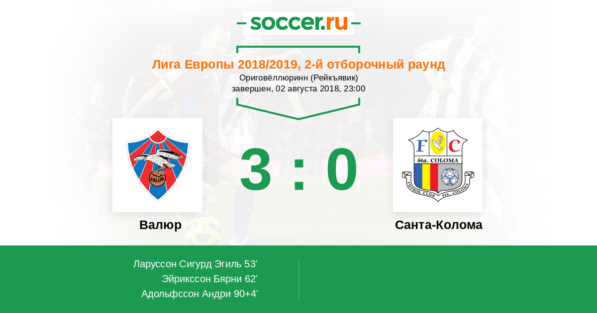 Валюр - Санта-Колома: обзор матча 2 августа 2018