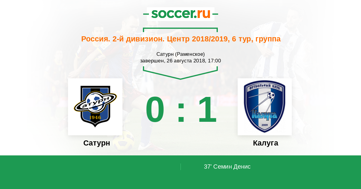 Сатурн - Калуга: обзор матча 26 августа 2018