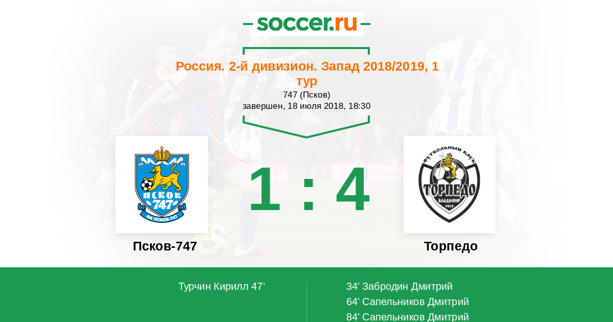 Псков-747 - Торпедо: обзор матча 18 июля 2018