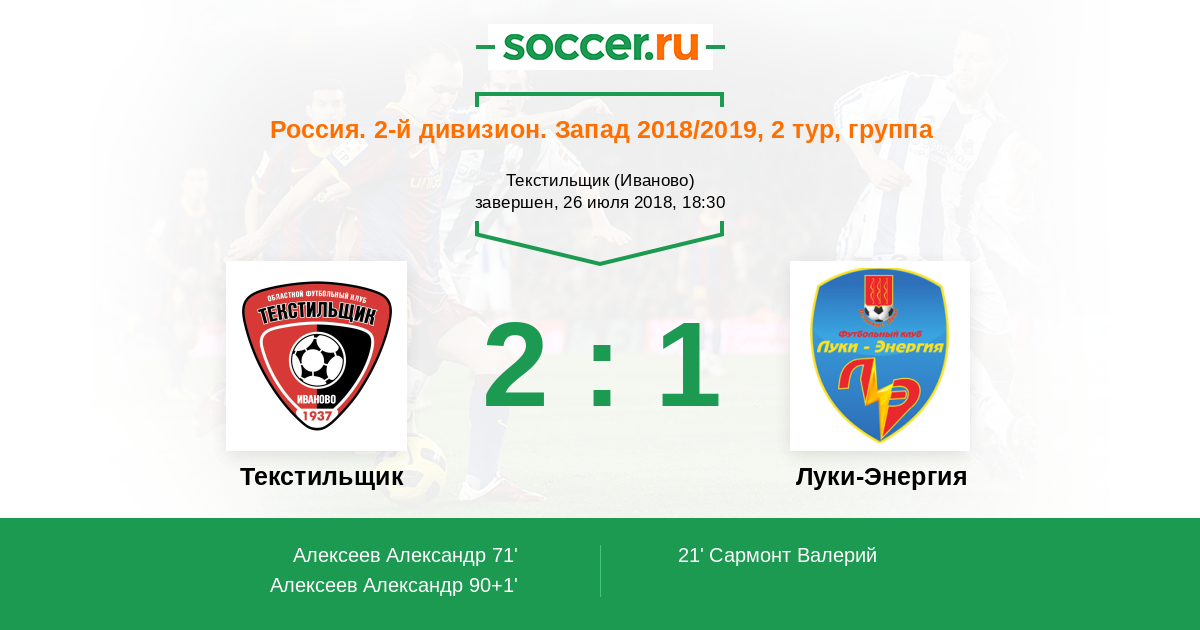 Текстильщик - Луки-Энергия: обзор матча 26 июля 2018