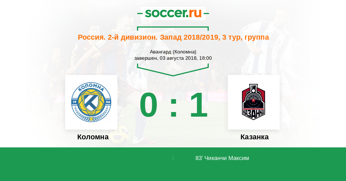 Коломна - Казанка: обзор матча 3 августа 2018