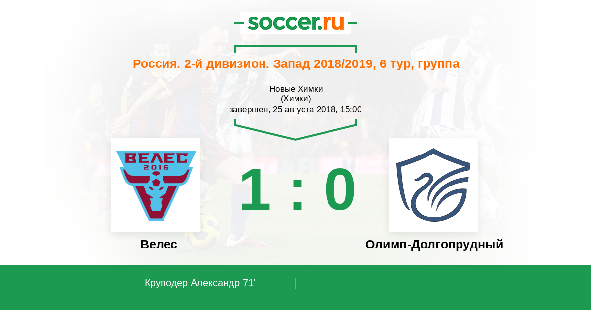 Велес - Долгопрудный: обзор матча 25 августа 2018