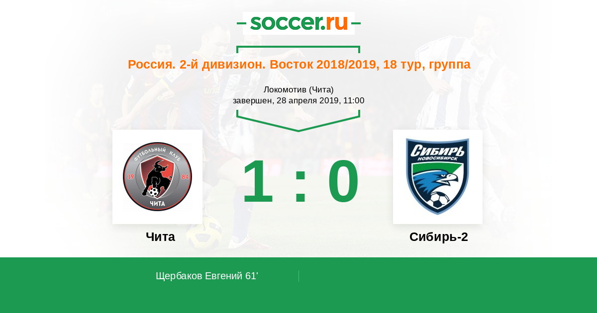 Чита - Сибирь-2: обзор матча 28 апреля 2019