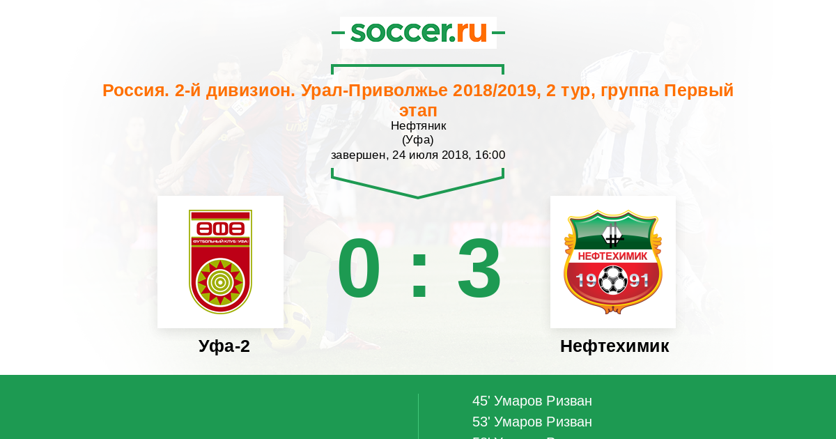 Уфа-2 - Нефтехимик: обзор матча 24 июля 2018