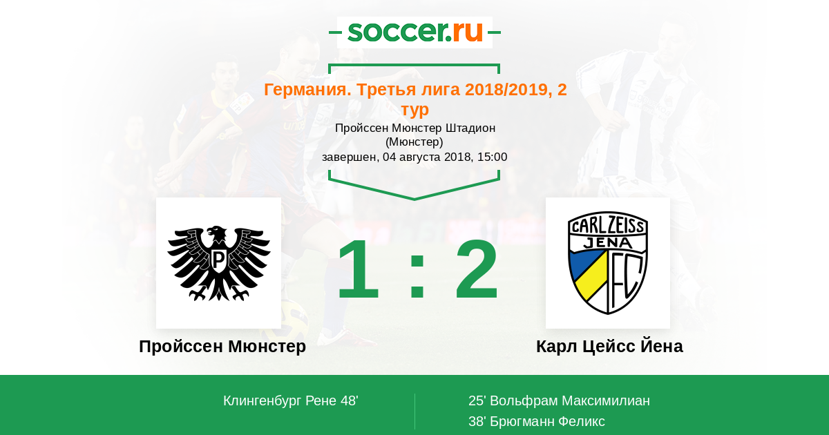 Пройcсен Мюнстер - Карл Цейсс Йена: обзор матча 4 августа 2018