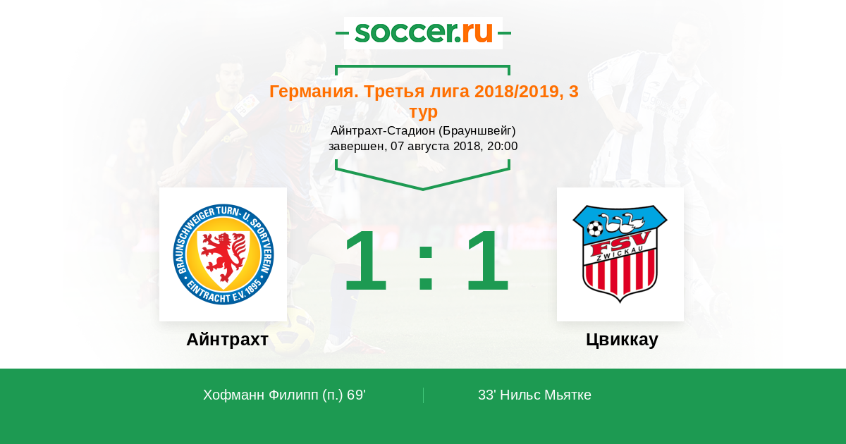 Айнтрахт - Цвиккау: обзор матча 7 августа 2018
