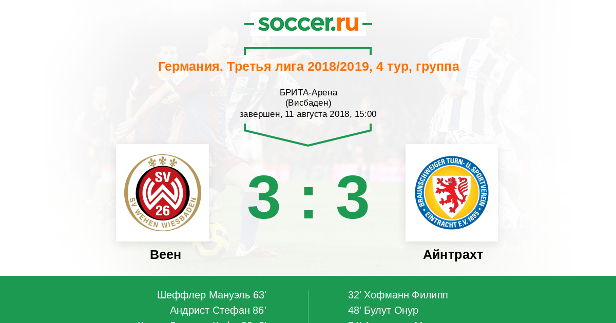 Веен - Айнтрахт: обзор матча 11 августа 2018