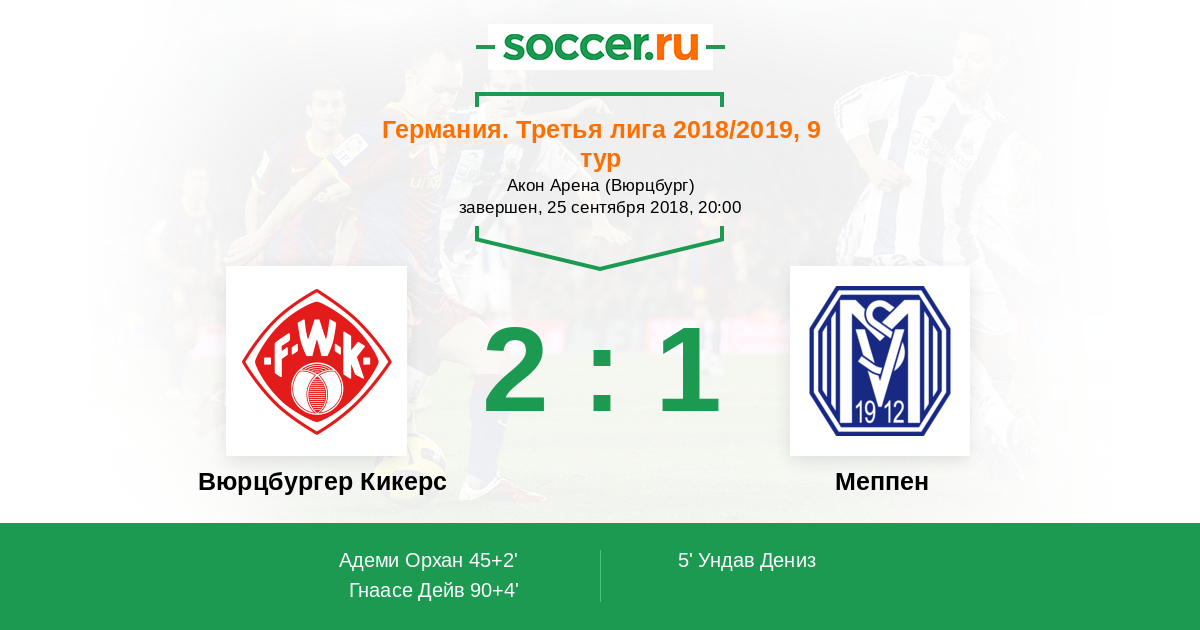 Вюрцбургер Кикерс - Меппен: обзор матча 25 сентября 2018