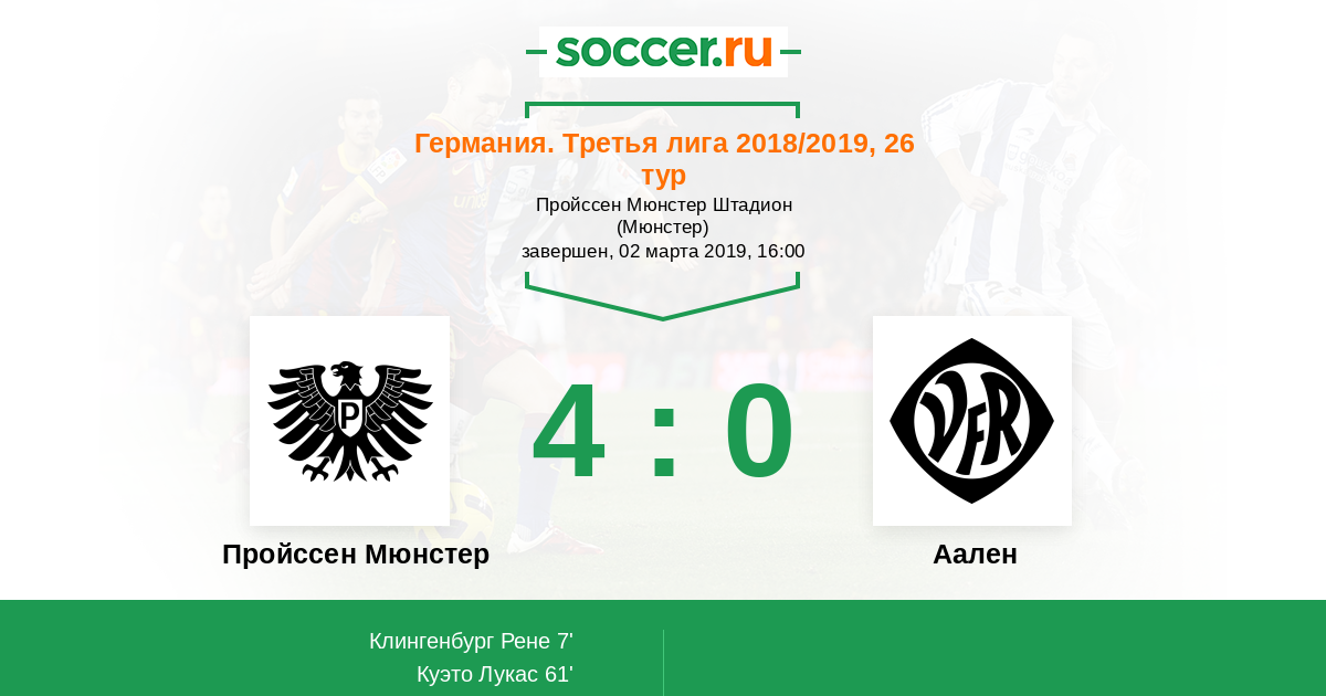 Пройcсен Мюнстер - Аален: обзор матча 2 марта 2019