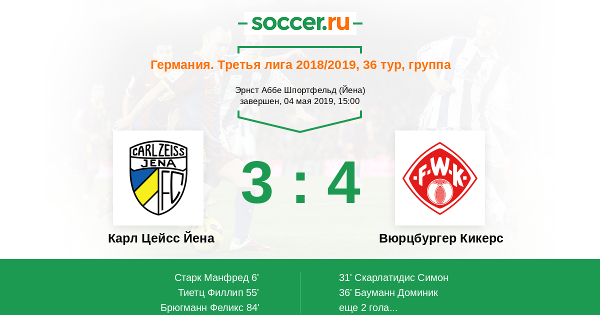 Карл Цейсс Йена - Вюрцбургер Кикерс: обзор матча 4 мая 2019