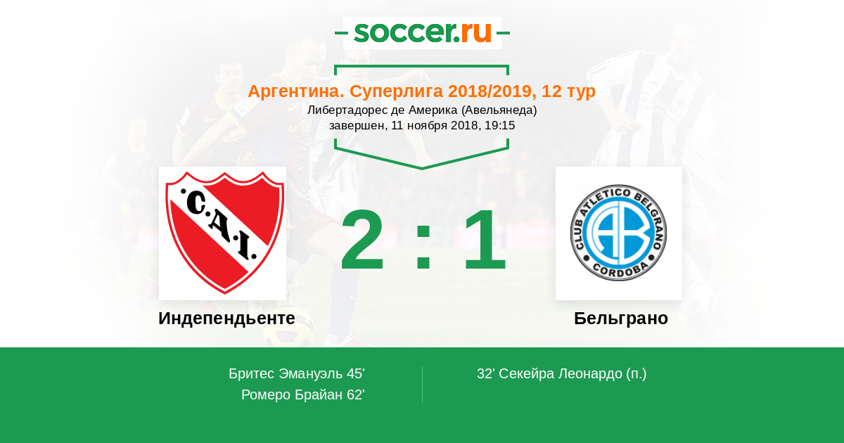 Индепендьенте - Бельграно: обзор матча 11 ноября 2018