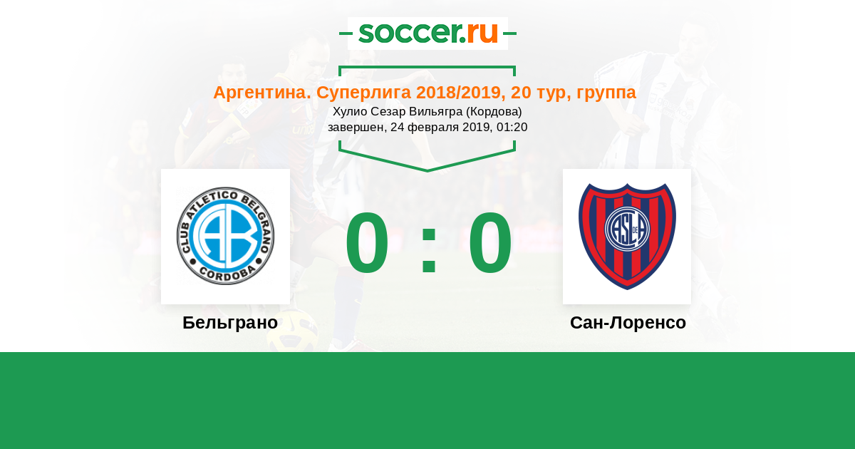 Бельграно - Сан-Лоренсо: обзор матча 24 февраля 2019
