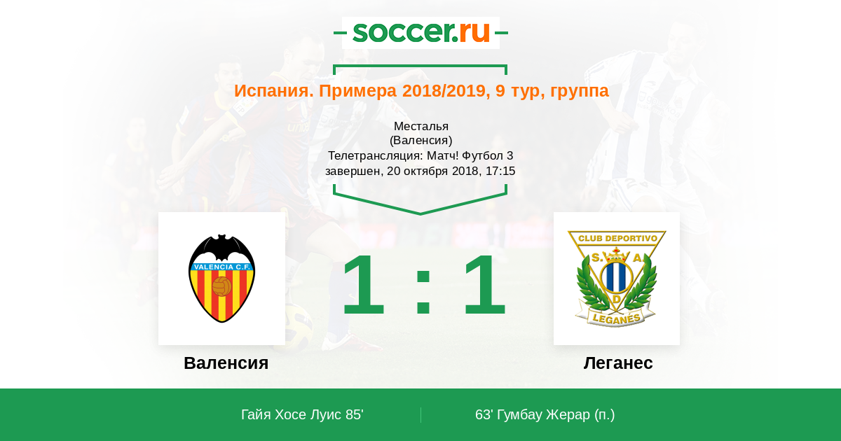 Валенсия - Леганес: обзор матча 20 октября 2018