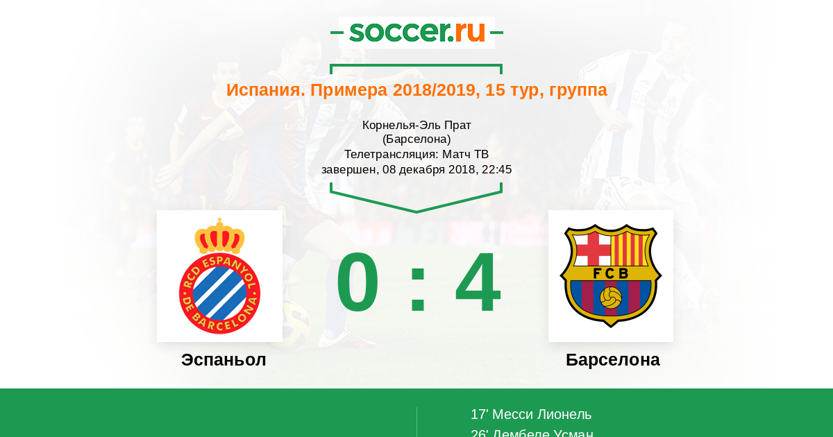 Эспаньол - Барселона: обзор матча 8 декабря 2018